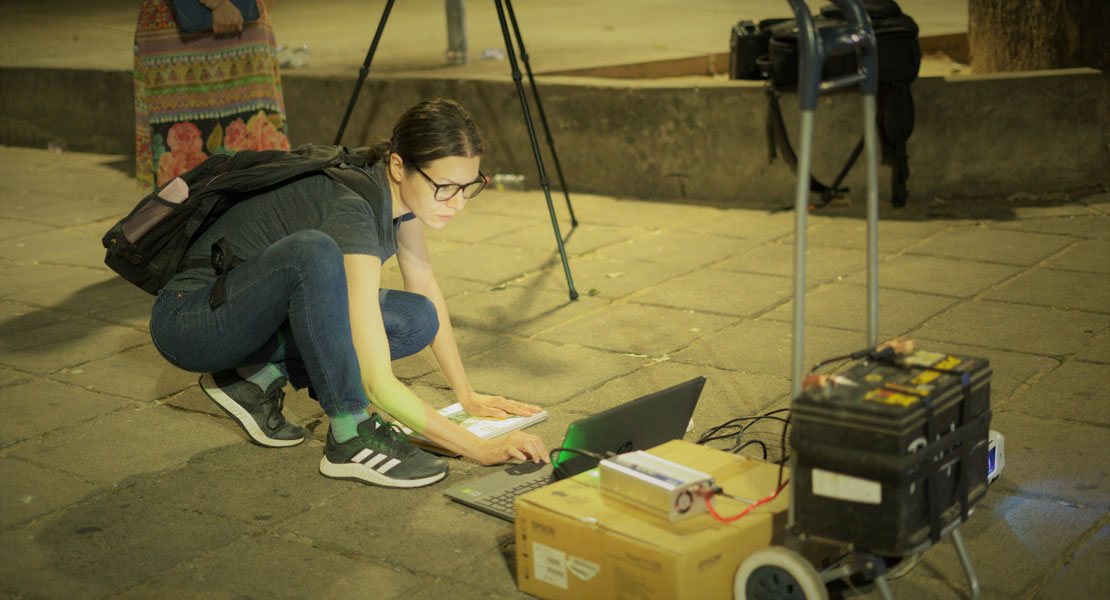 Artista digital creadora de experiencias sensoriales, combinando animación experimental, videomapping y técnicas mixtas.